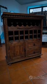 porta bottiglie di legno, con due cassettini e uno sportellino