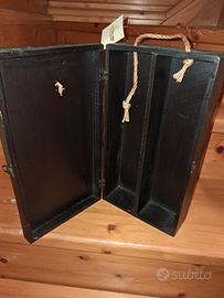 elegante porta bottiglie in legno perfetto per aggiungere un tocco di stile alla tua casa o come idea regalo. In alcuni punti si è tolta la vernice nera . Le bottiglie di vino non sono comprese