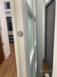 Porta per Interno bugnata laccata bianco 9010 con vetro visarm opale bianco e stile inglese superiore dimensioni 80cm x210 cm passaggio luce compresa di mostre e maniglia marchio Bertolotto (nuova)