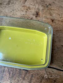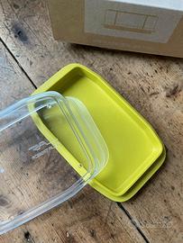 Porta burro di design, nuovo. Confezione originale, coperchio trasparente sopra e base verde avocado. Lavabile in lavastoviglie, senza BPA Disponibili sul mio profilo altri pezzi della stessa linea.