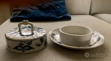 Porta burro in porcellana di produzione danese, dipinto a mano con decorazione cosidetta a cipolla. Anni ‘70