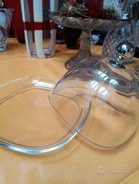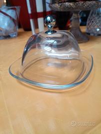 Porta burro in vetro cm 18*18 (piatto) , cupoletta cm 14*14, nuovo mai usato.