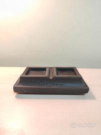 Elegante porta calamai doppio vintage, caratterizzato da una lavorazione decorativa ricca di dettagli. L’oggetto presenta due alloggi quadrati per i calamai e una base con motivi ornamentali, tipici della produzione artigianale d’epoca. Perfetto per: - collezionisti di articoli da scrittura antichi - arredamento in stile retrò o industrial - set fotografici, scenografie, studi creativi - appassionati di oggetti storici e da scrivania Condizioni: buone, con normale patina del tempo che ne valorizza l’autenticità. Epoca: presumibilmente primi ‘900