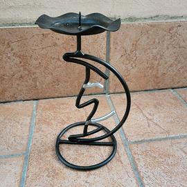 Porta candela in ferro battuto realizzato a mano e raffigurante una mezza luna stilizzata.