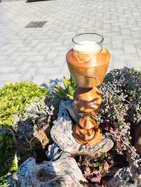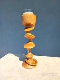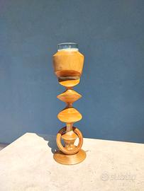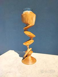 porta candela in legno di ulivo fatto al tornio con lavorazione molto elaborata .oggetto d'arredamento e da esposizione.