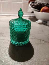 Soprammobile porta candela in vetro verde con coperchio. nuovo. note fruttate.