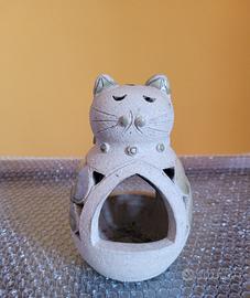 Solido caminetto in argilla refrattaria, può essere utilizzato come porta candela o bruciatore per incenso. Tema: gatto, double face.