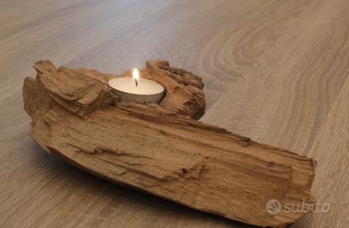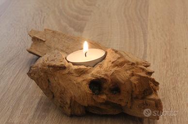 Porta candela in legna lavorato a mano con trattamento . Dimensioni 25 lunghezza -13 larghezza-4 altezza