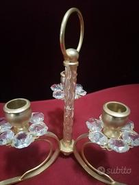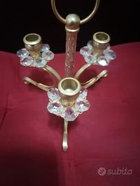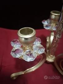 Porta candela tre luci in metallo oro e cristallo Swarovski altezza 15 cm