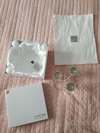 Sei alla ricerca di un pezzo decorativo sofisticato e versatile che possa arricchire qualsiasi ambiente? Questo elegante candelabro 3 fiamme della Fantin Argenti è la scelta perfetta. La base è realizzata in lega di rame con un bagno in argento e una smaltatura, lavorata con un disegno ad intreccio. I tre porta candela, anch'essi in lega di rame, sono inclusi con tre candele basse.