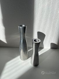 Set di due portacandele #vintage in alluminio lucidato disegnati da Erika Pekkari negli anni ’90 per #ikea (fuori produzione).