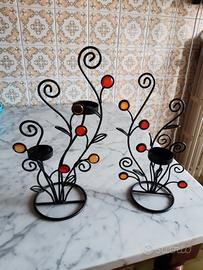 2 porta candele in ferro battuto e dischietti di gocce colorate come nuove