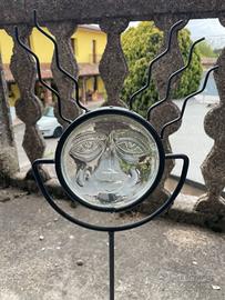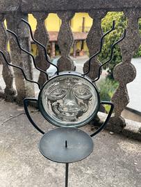 Portacandele con struttura in ferro, maschera di vetrodacanti al piatto per gli effetti di luce.