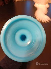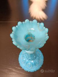 vendo porta candele opaline turchese antico , altezza 25 cm qualche crinatura solo all'interno del porta candela non visibile all'esterno