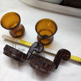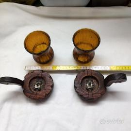 Vendo 2 porta candele in legno e vetro vintage, ottimo stato.