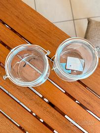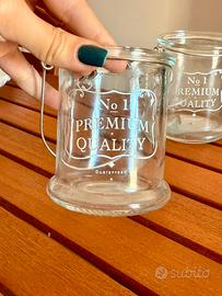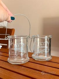 Set di due porta candele in vetro con manico in metallo, perfetti per creare un'atmosfera accogliente.