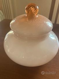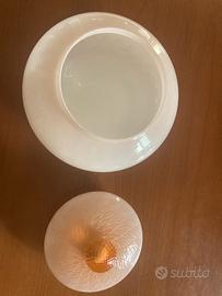 Vendo porta caramelle in vetro/ceramica. Colore rosa tenue. Diametro cm 20.