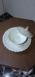 Porta caramelle bianco in ceramica Bavaria, con coperchio. Diametro piatto 28cm, diametro vaso 17cm, altezza 13cm.