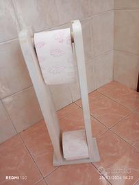 porta carta igienica in legno fatto a mano. Colore bianco stile shabby. altezza 56 cm