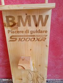 porta casco in legno fatto a mano ..con incisione personalizzata.. Si può appendere anche giubbotto e guanti.