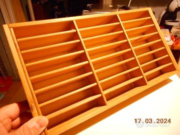 PORTA CASSETTE STEREO DA APPENDERE AL MURO -REALIZZATO IN LEGNO DI COLORE CHIARO EVENTULAMENTE VERNICIABILE. CONSEGNA A MANO SU ROMA.