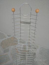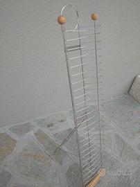 Porta cassette video VHS in metallo. Dimensioni lunghezza effettiva cm 102, larghezza massima cm 26, profondità massima cm 34. Può contenere un massimo di 26 video cassette.