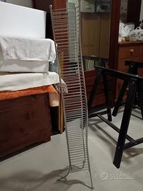 porta CD o DVD a colonna in metallo, caratterizzato da un design moderno e sinuoso. Capacità: Possono ospitare solitamente circa 52-60 CD o DVD. Materiale: Struttura realizzata in acciaio cromato o metallo argento resistente. Dimensioni: Le versioni a colonna hanno spesso un'altezza compresa tra i 113 cm e i 115 cm. Design: La forma "a onda" o curva è pensata per un arredamento moderno