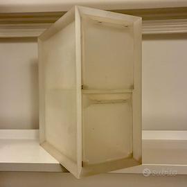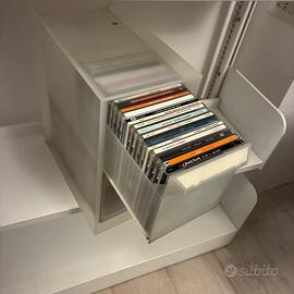 Porta CD Ikea fine anni ‘90 in polipropilene bianco semitrasparente, ogni cassetto contiene circa 27 CD. Misure 16x35x30 cm. Disponibili 2 pezzi.