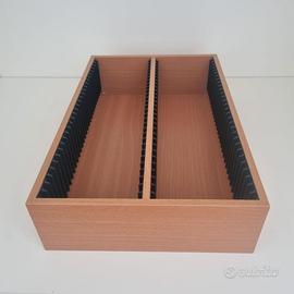 Porta CD in legno contenitore per archiviazione CD singoli con 60 posti usato Porta CD in legno Contenitore per archiviazione CD singoli Con 60 posti, 30 per lato Contenitore usato Senza marca / brand Misure: cm 28,30 x 10,00 x 43,30 di altezza circa Peso di 1,45 kg Porta CD usato, con qualche segno di usura e del trascorrere del tempo; un lato del supporto per i CD è leggermente scollato per una lunghezza di circa 3,00 cm, come mostrato in fotografia. Nel complesso, le condizioni del porta CD sono buone. Posso fornire ulteriori fotografie a richiesta. L'articolo viene imballato con cura usando pluriball e altro materiale da imballaggio. Nella preparazione del collo per la spedizione sarà utilizzato, per quanto possibile, materiale da imballaggio di recupero.