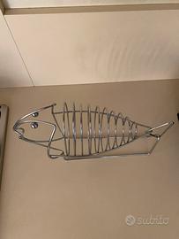 Porta cd in inox a forma di pesce lunghezza 34x23x110 cambio per sostituzione arredamento