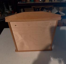 Porta chiavi con sportellini interamente in legno. Possibilità di essere appeso al muro . Può essere pitturato in quanto legno naturale.