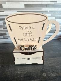 Design a forma di tazzona con scomparti per zucchero e palettine.