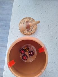Vendo porta cialde vergnano, in terracotta con coperchio di sughero e cucchiaio in legno. Altezza 20 cm diametro 15. Può contenere una cinquantina di cialde