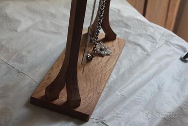 Porta collane/espositore di collane artigianale in legno massello di leccio, realizzato a mano.