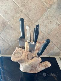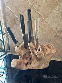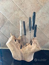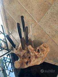 Porta coltelli handmade , fai da te , artigianale, creato con tronco di olivo e molto impegno , molto bello e raro , rifinito con olio di oliva .