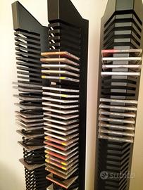 Vendo porta CD artigianale in metallo nero e legno di noce. Portata totale di 180 dischi. No spedizione solamente consegna a mano.