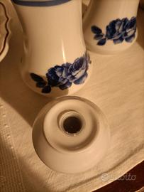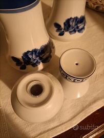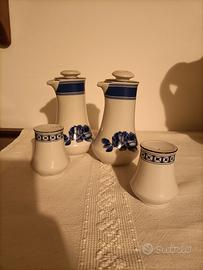 Porta olio, porta aceto, porta sale e porta pepe in ceramica decorata. Acquistati e tenuti in vetrina per mostra, mai usati.