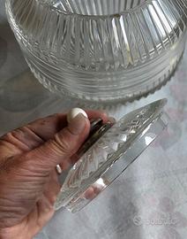 Un Portaconfetti in cristallo con coperchio e pomellino in avorio.