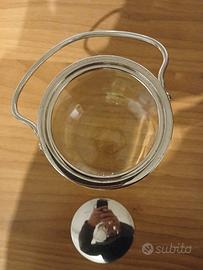 Porta confetti-cioccolatini vintage vetro e acciaio cromato dimensioni altezza cm 15 con il manico cm 24 diametro cm 38
