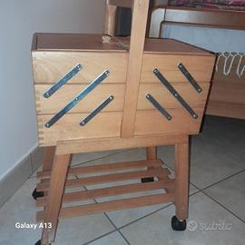 porta cucito con vari scomparti,in legno. Non è stato usato tenuto bene