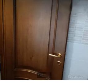 Porta interna, misure 210 x 80, colore noce medio chiaro, maniglie color oro.
