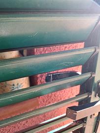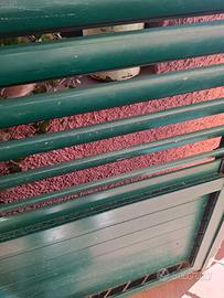 porta 207 x 89 circa, alluminio verde, completa di stipite e serratura, con lamelle orientabili tipo persiana, in buone condizioni in quanto montata in posizione riparata