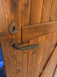 Porta da interno legno massello a battente reversibile con maniglia e cardini in ottone dipinta colo no e scuro. Dimensioni 84cmx210cm Ritiro a carico di acquirente. Si trova in provincia di Parma, nel comune di Noceto. NON faccio spedizioni