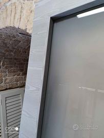 vendo porta interna in legno con vetro satinato dimensioni esterno telaio 94x2140 luce passaggio 86x210. Completa di mostrine e telaio nuovi ancora imballati.