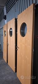 bellissima porta in acero naturale, cm 80 x 210 (standard) con oblò in plexiglas eseguita da falegnameria su disegno per casa di architetto torinese. Maniglia Olivari. Vendo solo la porta, no cornici/controtelaio (facilmente adattabile, era già stata montata su preesistente telaio anni'60). Disponibili 3 porte: 2 spingere dx e 1 spingere sx. Zona Mirafiori, magazzino piano garage -1, comodo per ritiro.