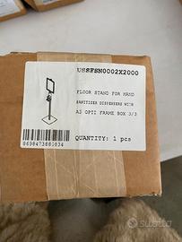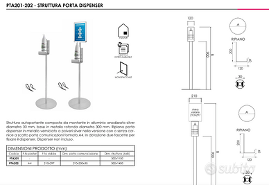 Porta dispenser con porta comunicazioni: composto da una base circolare diametro 30 cm e un montante in alluminio silver con diametro 3 cm.