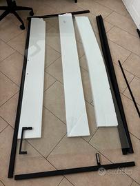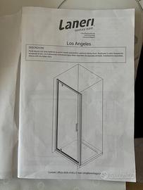 Vendo porta per doccia con anta battente su perni rotanti asimmetrici NUOVA (mai montata, errato acquisto) vetro trasparente temperato 8 mm, con trattamento anticalcare easy-clean. Installazione reversibile. Completa di viti e tasselli (altezza 200 cm / telaio nero)