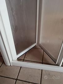 Vendo porta pieghevole a libro per doccia in nicchia. In ottime condizioni, solo poco segna uso sul bordo finale ma niente di grosso. Materiale alluminio bianco e plexiglass satinato. Larghezza regolabile da 67 a 70 cm, altezza 185. La porta di trova a Cazzago di Pianiga.