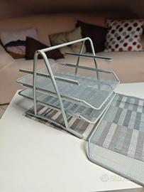 Porta Documenti da Scrivania in Metallo, con 3 comodi cassetti che possono scorrere in entrambi i versi, facilmente rimovibili dalle guide, utili per tenere in ordine documenti e riviste (formato standard A4 - dimensione 21 x 30 cm). Colore grigio.