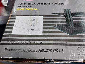 mensola a 2 ripiani in vetro porta lettore DVD/CD dimensioni mm. 360x270x291 appendibile a muro